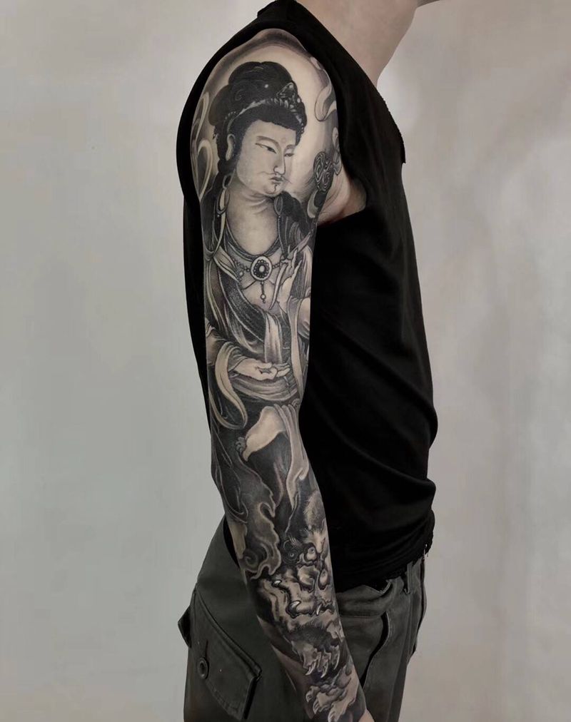 当前位置: 首页 >河北省廊坊市纹身店-灵刺青SpiritTattoo纹身图案>文殊菩萨唐狮纹身图片_手臂新传统文殊菩萨唐狮纹身图案