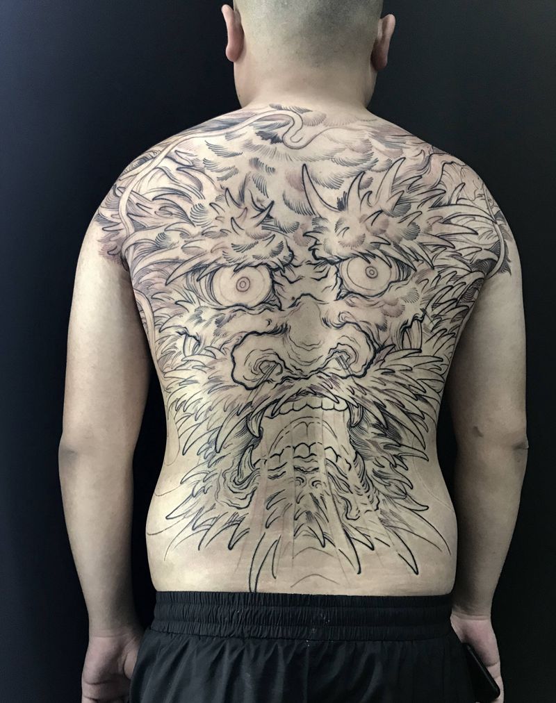 大龙头纹身图片_背部新传统纹身图案
