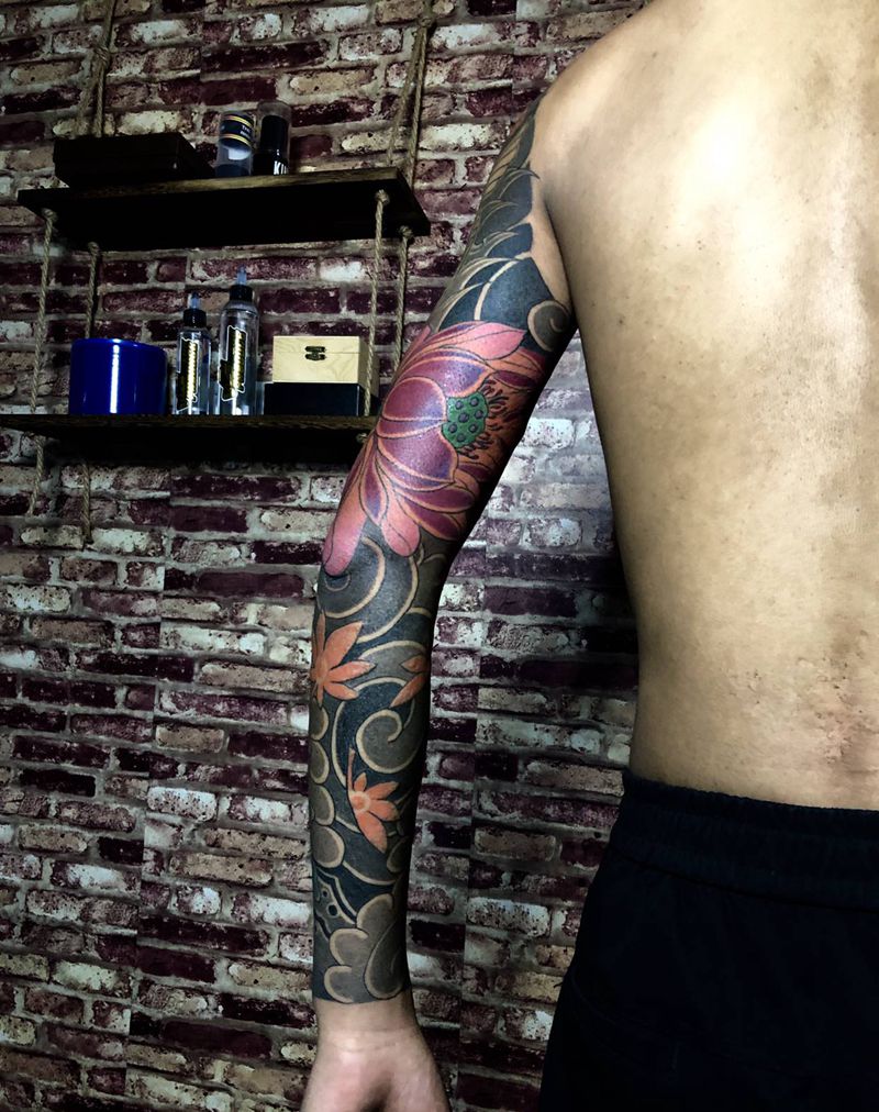 当前位置: 首页 >河北省沧州市纹身店-V5刺青纹身图案>老传统花臂纹身图片_手臂老传统荷花纹身图案