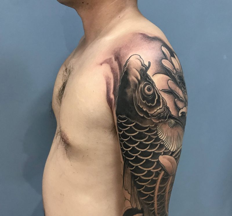 当前位置: 首页 >河北省廊坊市纹身店-灵刺青SpiritTattoo纹身图案>鱼纹身图片_手臂新传统纹身图案