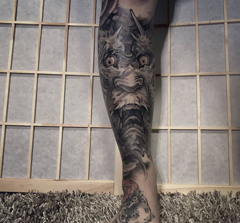 当前位置: 首页 >河北省廊坊市纹身店-灵刺青SpiritTattoo纹身图案>龙纹身图片_腿部纹身图案