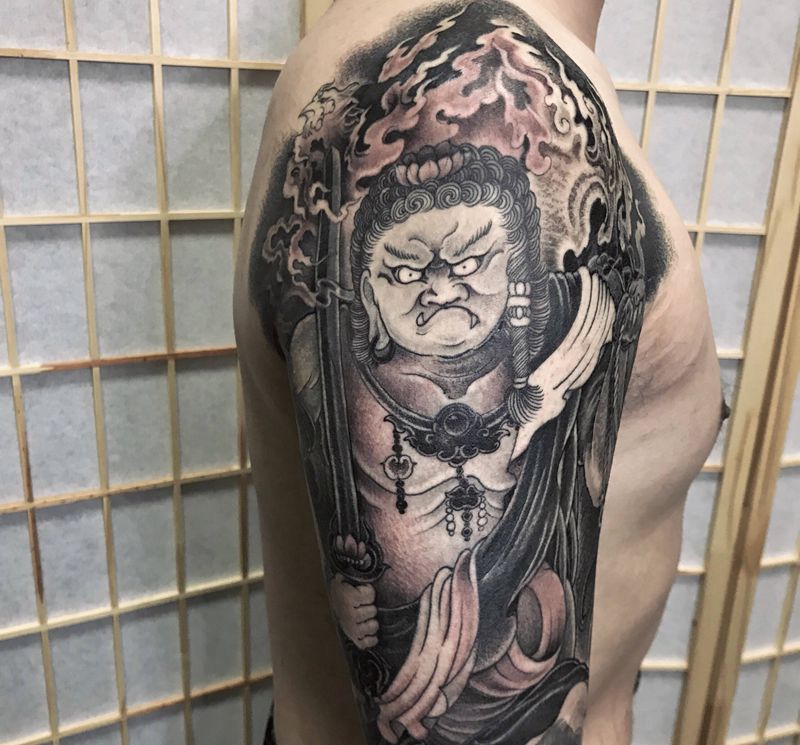 不动明王纹身图片_手臂新传统纹身图案