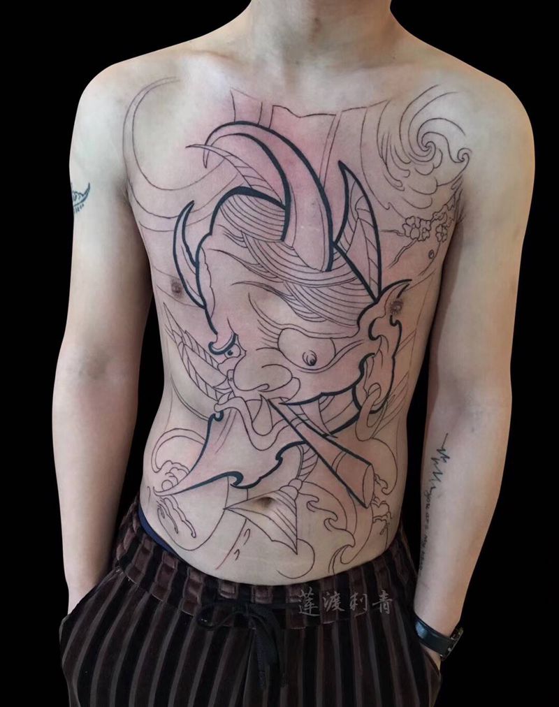 当前位置: 首页 >河北省廊坊市纹身店-莲渡刺青纹身图案>前胸般若线条完成纹身图片_胸部腹部老传统新传统纹身图案