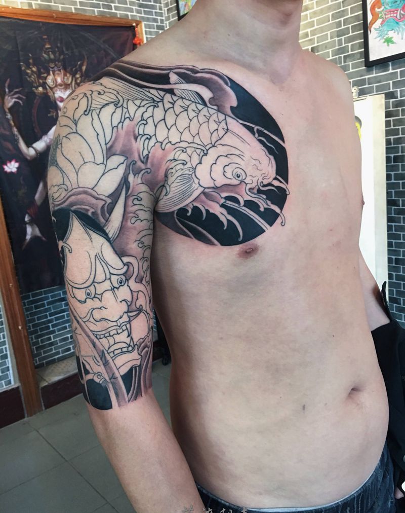 当前位置: 首页 >河北省廊坊市纹身店-莲渡刺青纹身图案>背景完成 恢复后上彩纹身图片_胸部手臂新传统老传统纹身图案