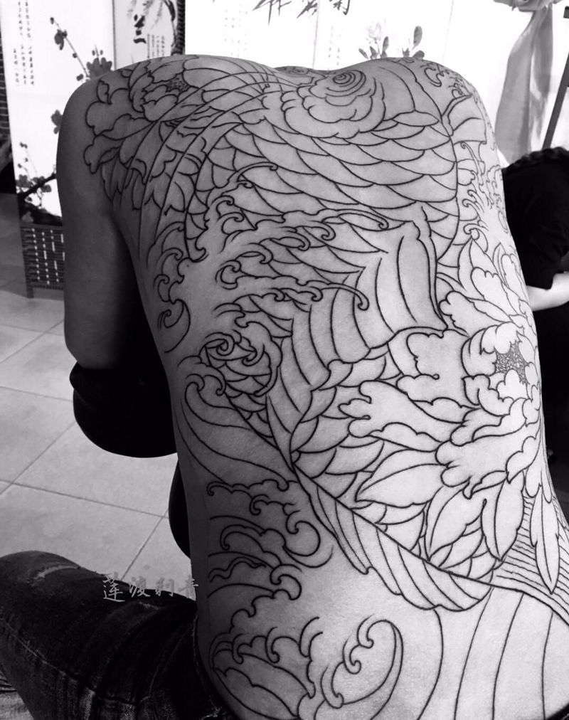 当前位置: 首页 >河北省廊坊市纹身店-莲渡刺青纹身图案>满背鱼线条完成纹身图片_背部腰部新传统纹身图案