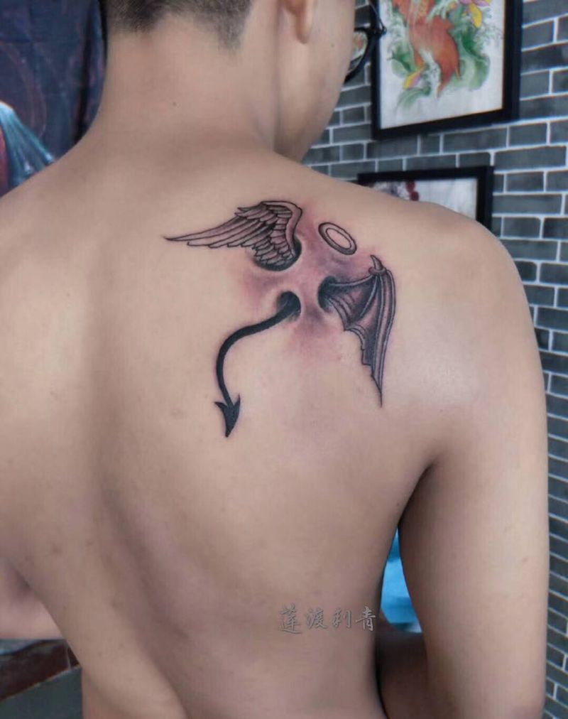 天使翅膀完成纹身图片_背部肩部新传统纹身图案