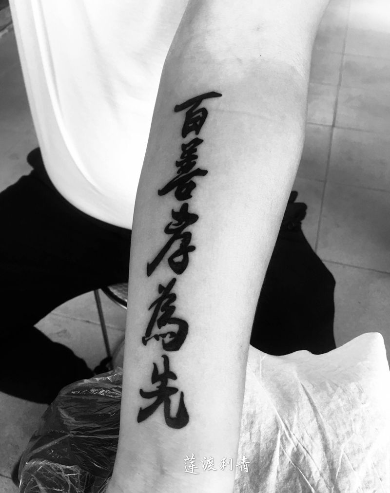 当前位置: 首页 >河北省廊坊市纹身店-莲渡刺青纹身图案>小臂字完成纹身图片_手臂新传统纹身图案