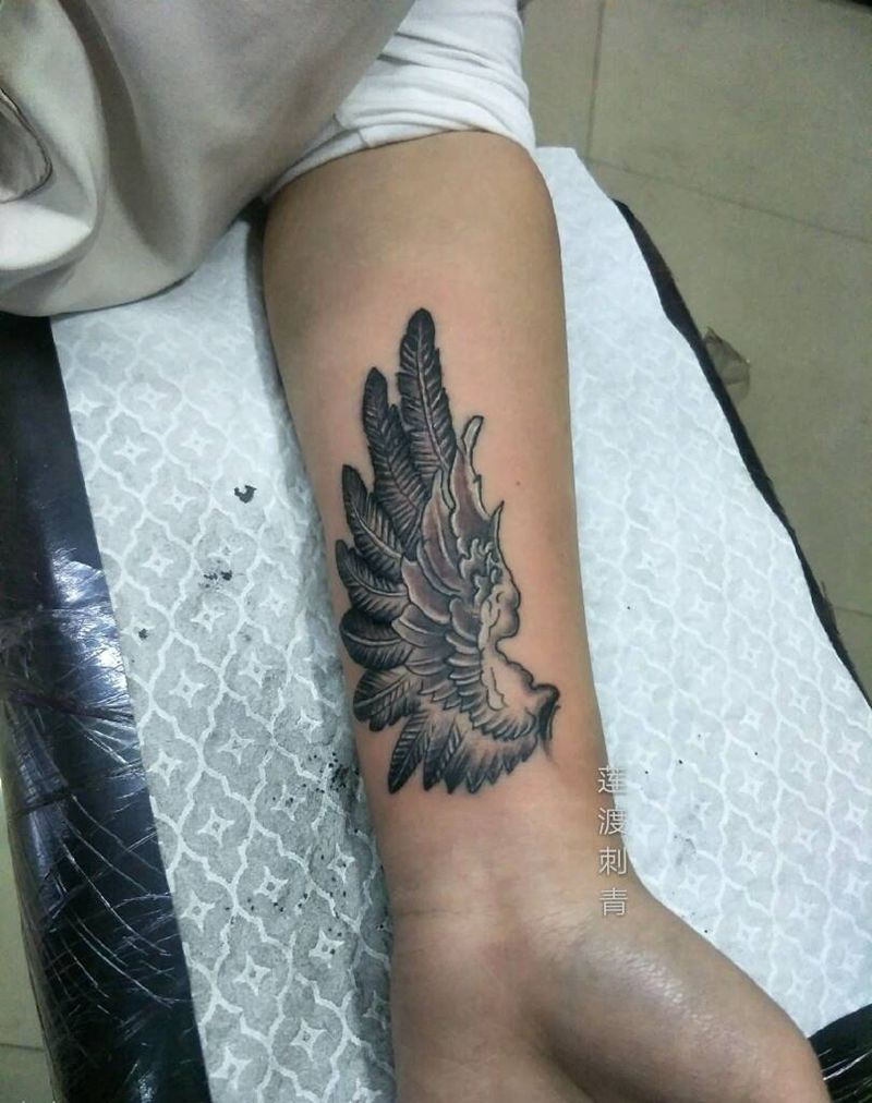 当前位置: 首页 >河北省廊坊市纹身店-莲渡刺青纹身图案>小臂翅膀完成纹身图片