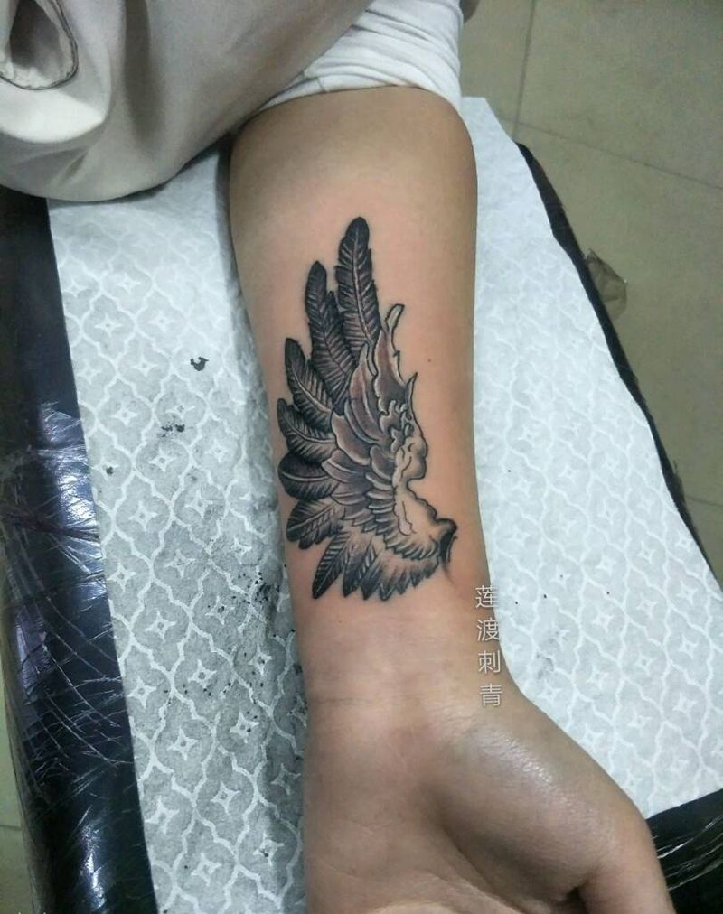 当前位置: 首页 >河北省廊坊市纹身店-莲渡刺青纹身图案>小臂翅膀完成纹身图片