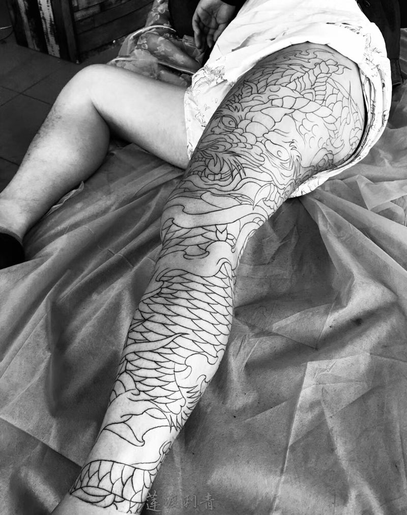 当前位置: 首页 >河北省廊坊市纹身店-莲渡刺青纹身图案>盘龙腿线条完成纹身图片_腿部臀部新传统纹身图案