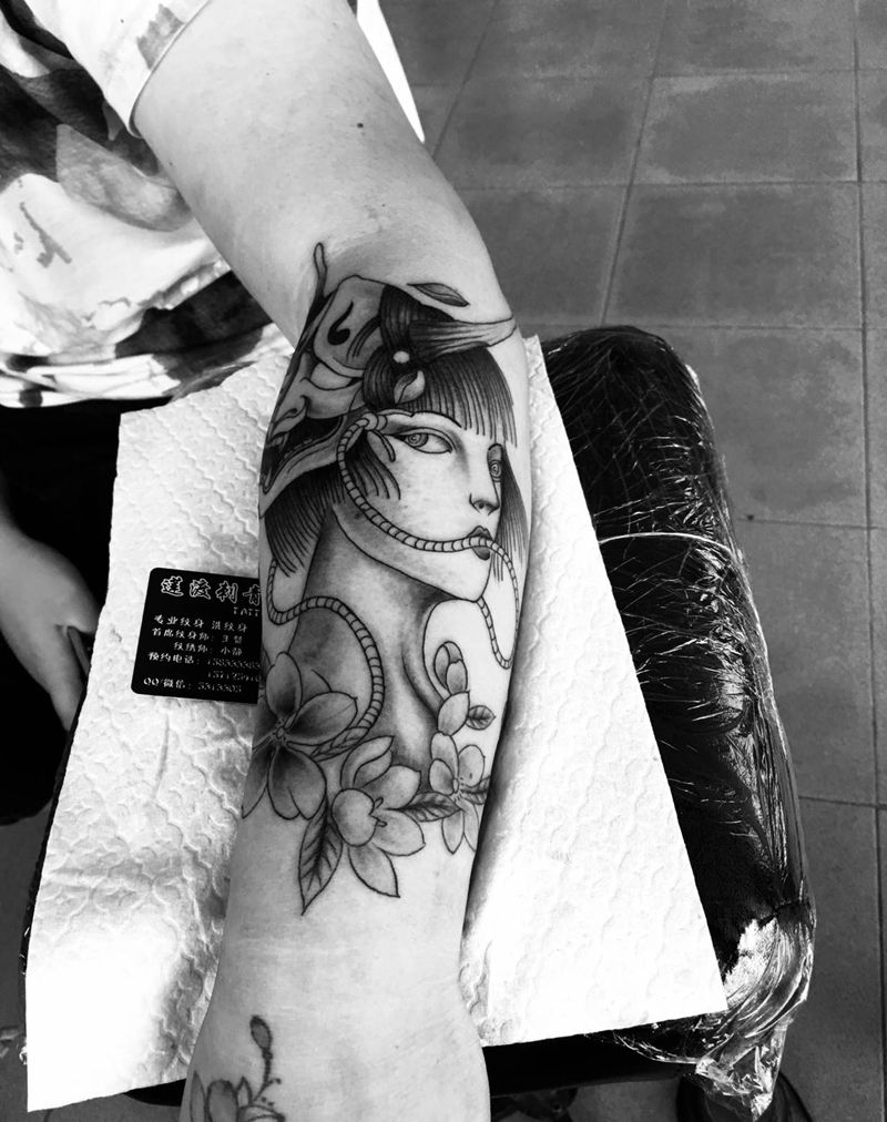 当前位置: 首页 >河北省廊坊市纹身店-莲渡刺青纹身图案>小臂艺伎完成纹身图片_手臂新传统纹身图案