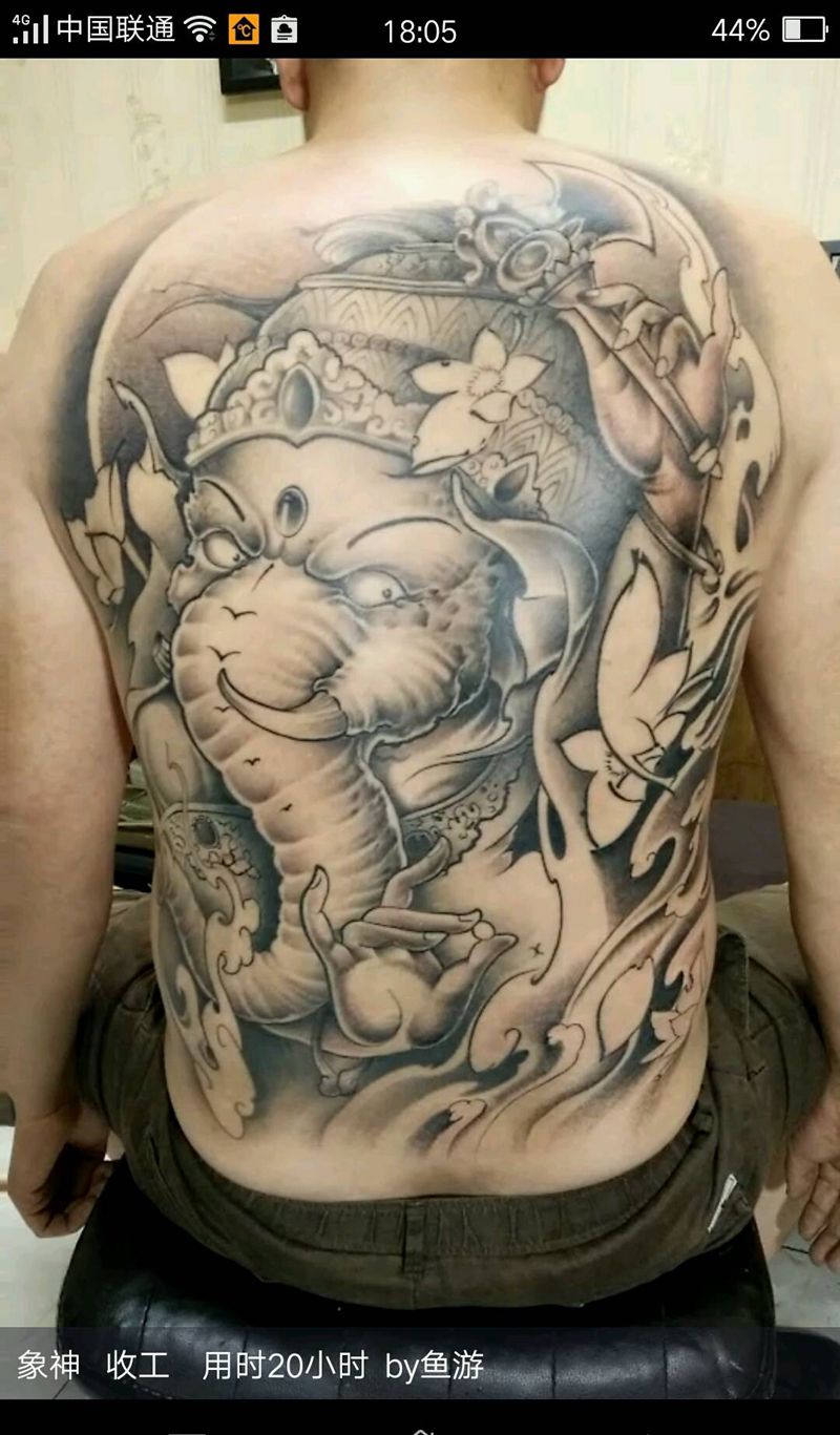 当前位置: 首页 >河北省沧州市纹身店-任丘鱼游刺青tattoo纹身图案>满背象神纹身图片