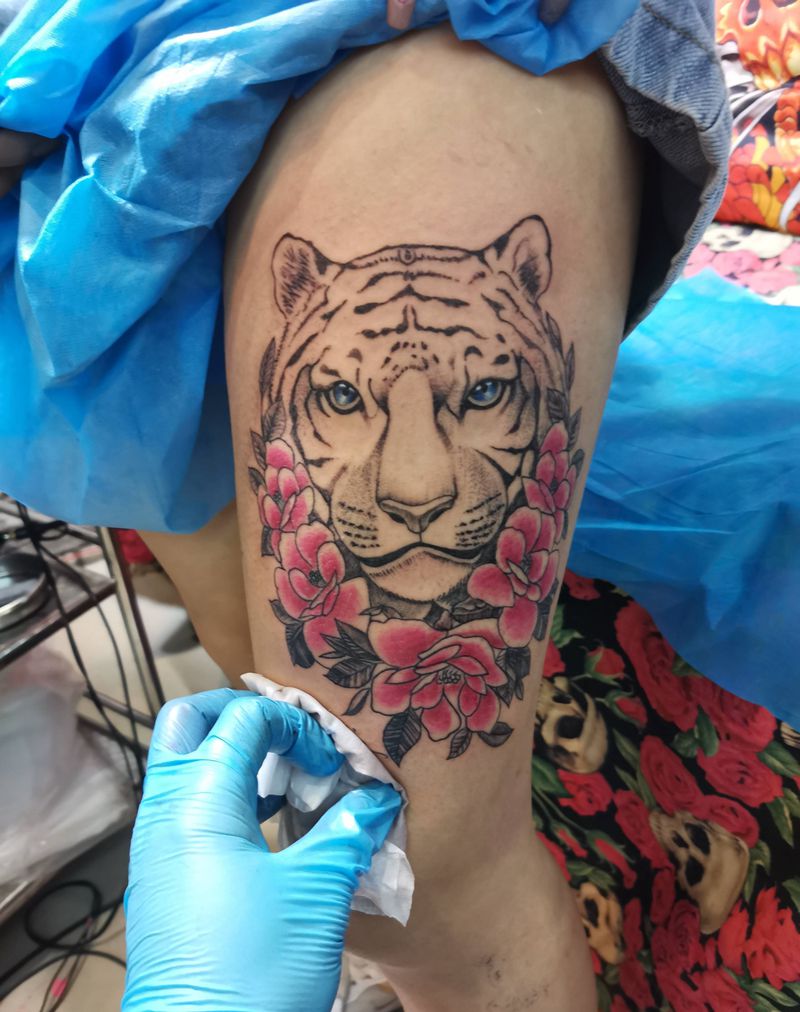 当前位置: 首页 >河北省廊坊市纹身店-魅力纹身社纹身图案>老虎纹身图片_腿部手臂点刺纹身图案