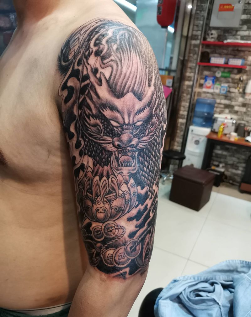 麒麟纹身图片_手臂肩部新传统纹身图案