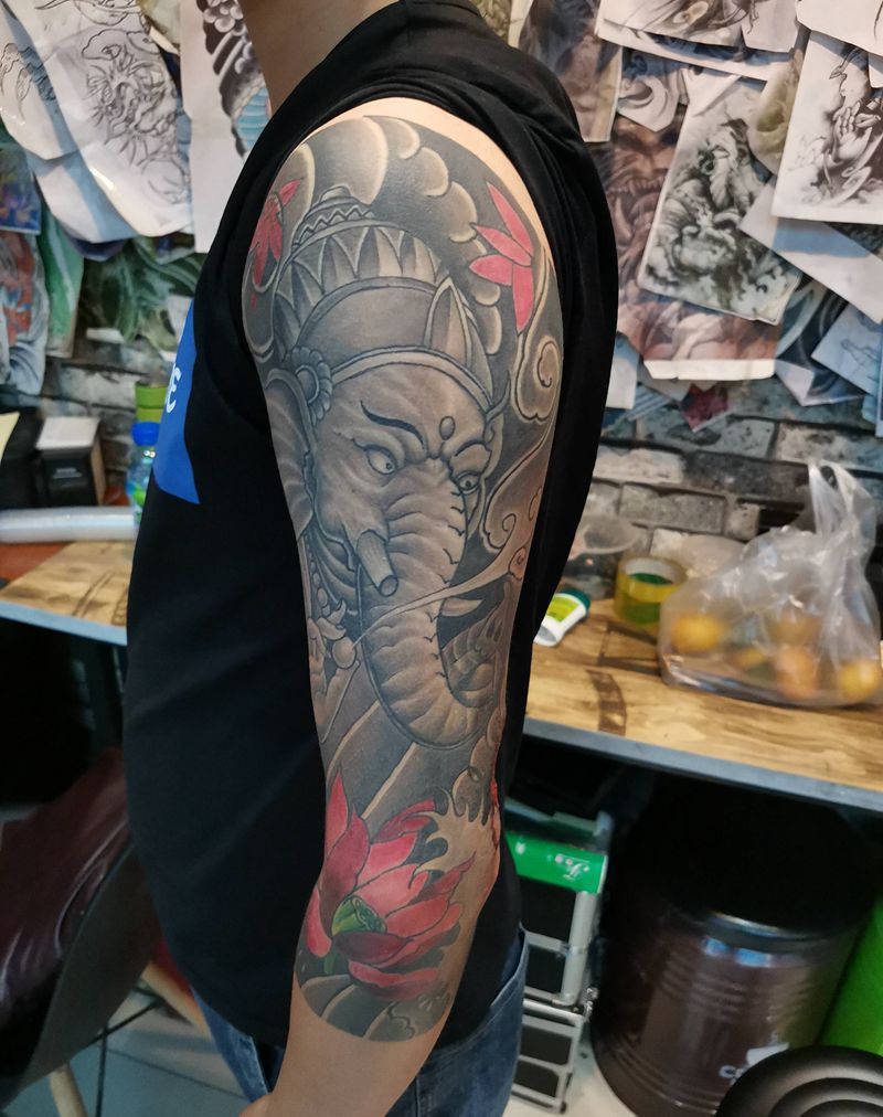 当前位置: 首页 >河北省廊坊市纹身店-魅力纹身社纹身图案>象神纹身图片_老传统纹身图案
