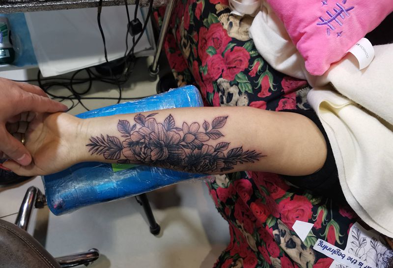 素花遮盖纹身图片_手部手臂点刺纹身图案