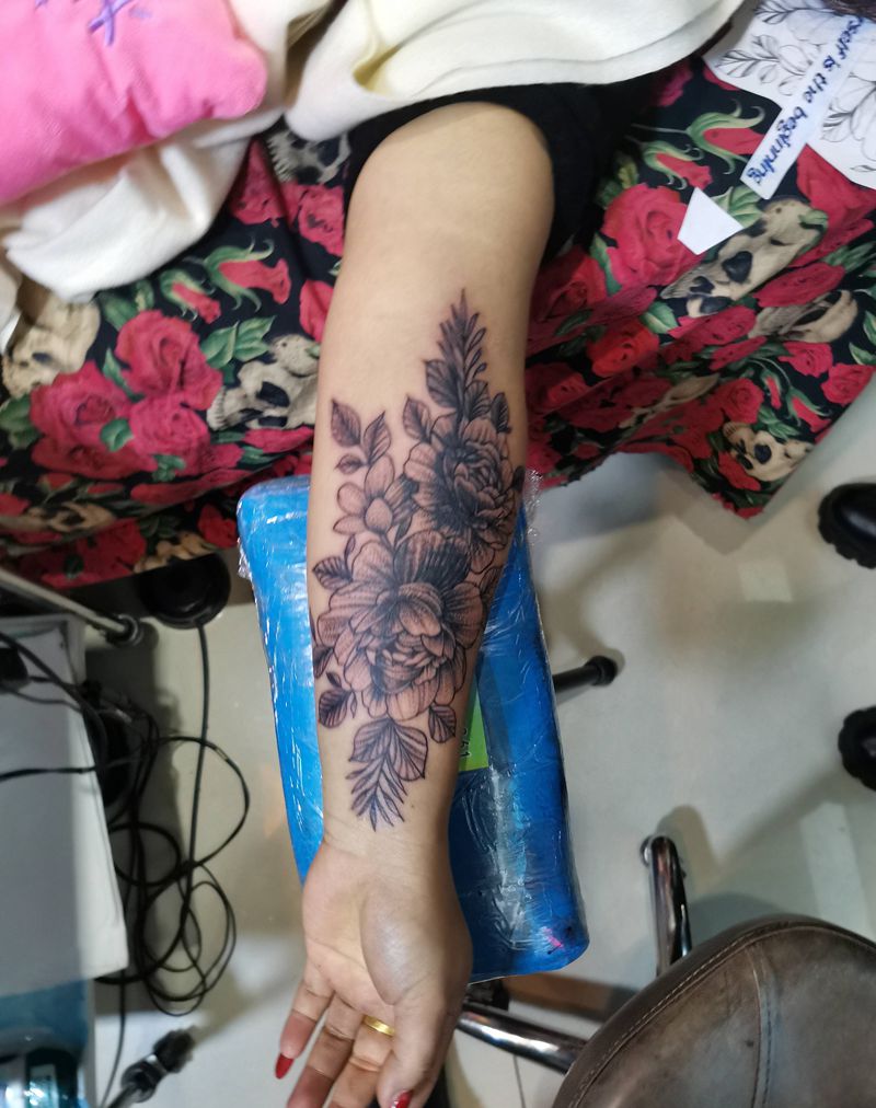 素花遮盖纹身图片_手部手臂点刺纹身图案