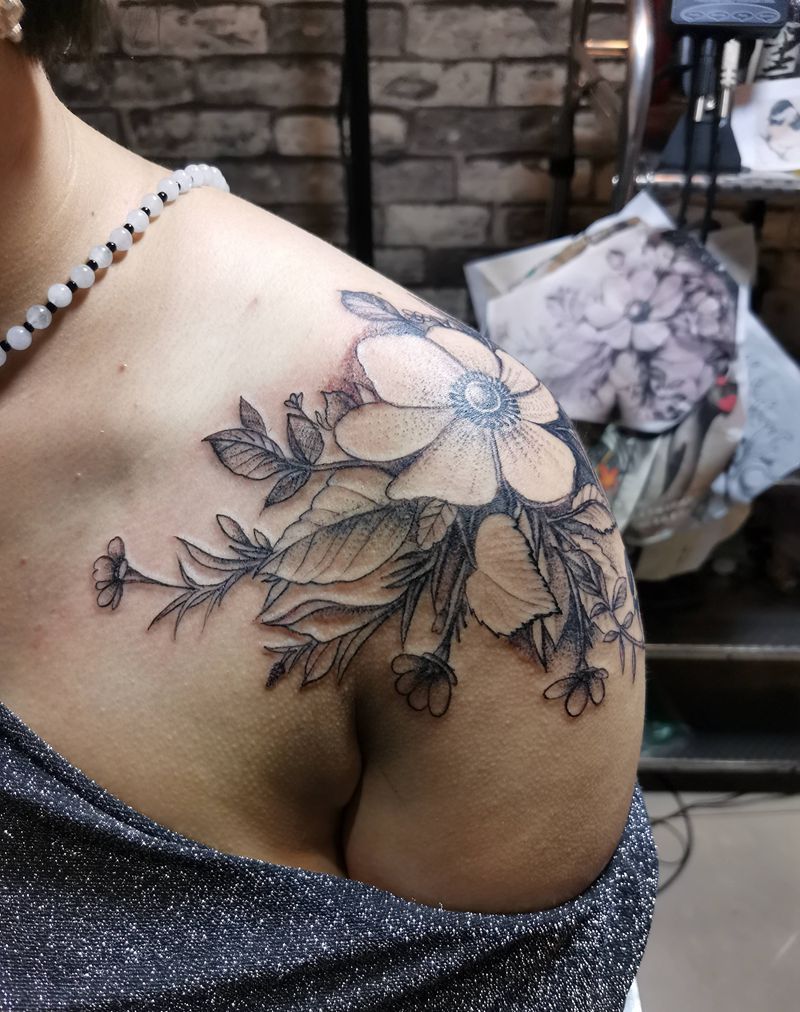 当前位置: 首页 >河北省廊坊市纹身店-魅力纹身社纹身图案>太阳花纹身纹身图片_肩部点刺纹身图案