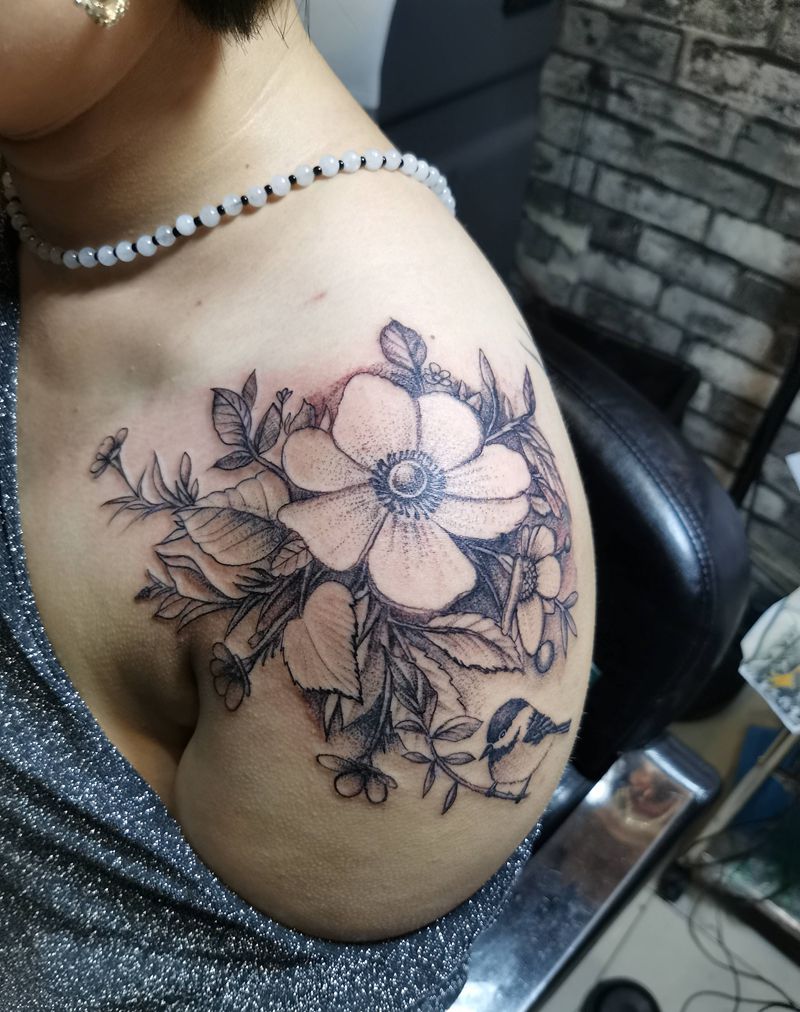 • 女性大花胸纹身_43张霸气漂亮的女性大花胸纹身图案作品