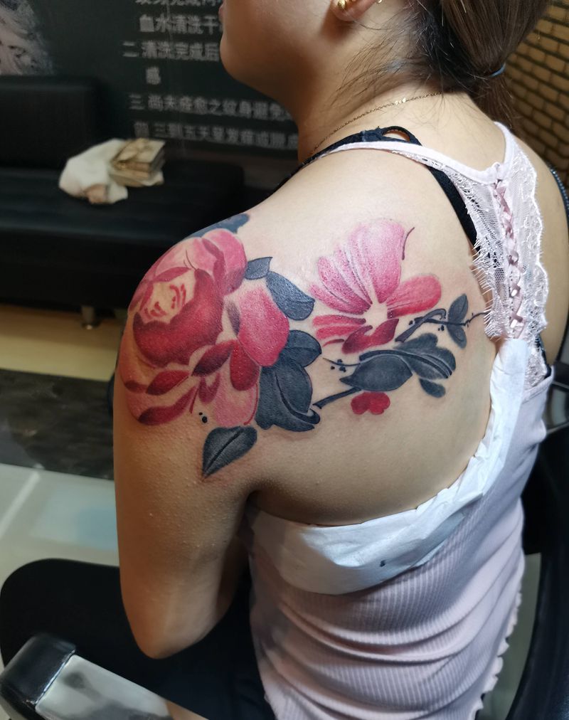 当前位置: 首页 >河北省廊坊市纹身店-魅力纹身社纹身图案>花开富贵纹身图片_肩部水墨纹身图案