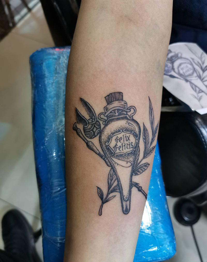 当前位置: 首页 >河北省廊坊市纹身店-魅力纹身社纹身图案>魔法药水纹身图片_手臂点刺纹身图案