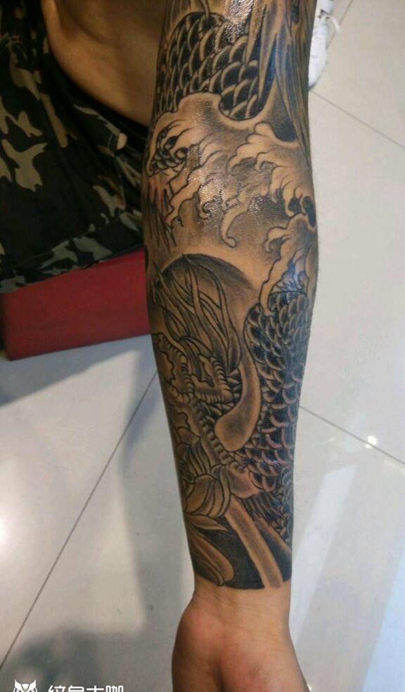 • T网红王老大花腿龙纹身图片_腿部新传统纹身图案