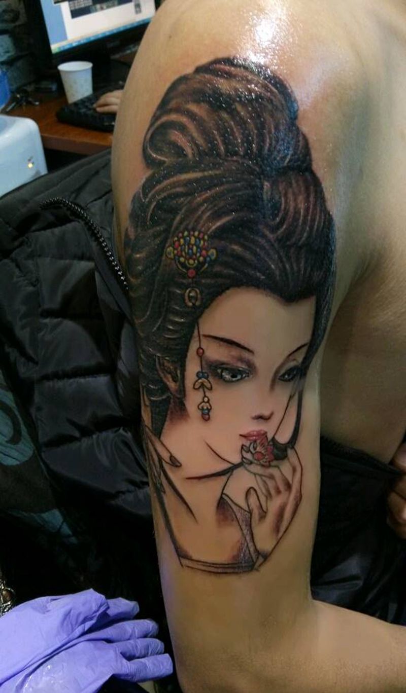 当前位置: 首页 >河北省廊坊市纹身店-魅力纹身社纹身图案>美女纹身纹身图片_肩部传统人物成品纹身图案