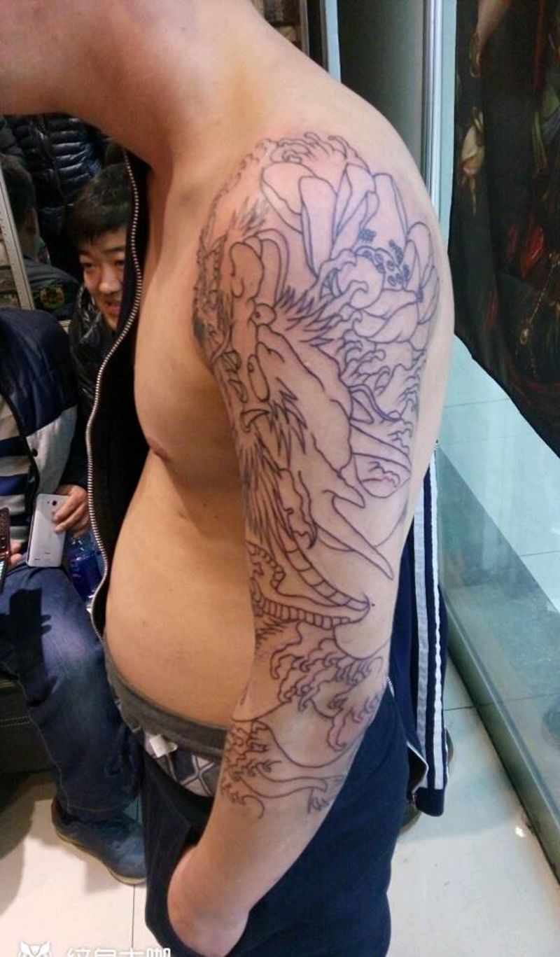 当前位置: 首页 >河北省廊坊市纹身店-魅力纹身社纹身图案>七分龙花臂纹身图片