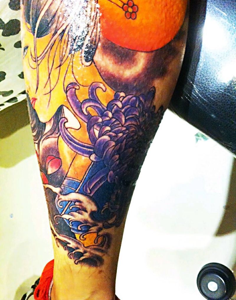 • T网红王老大花腿龙纹身图片_腿部新传统纹身图案