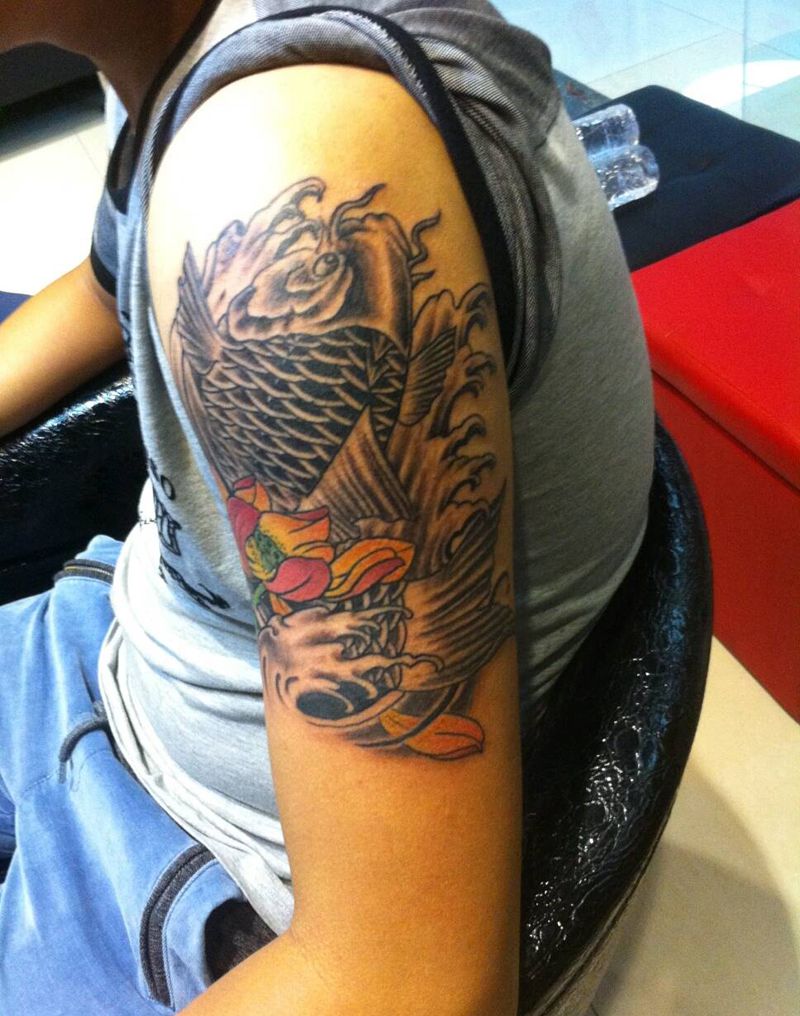 鲤鱼纹身纹身图片_肩部手臂动物廊坊纹身纹身图案