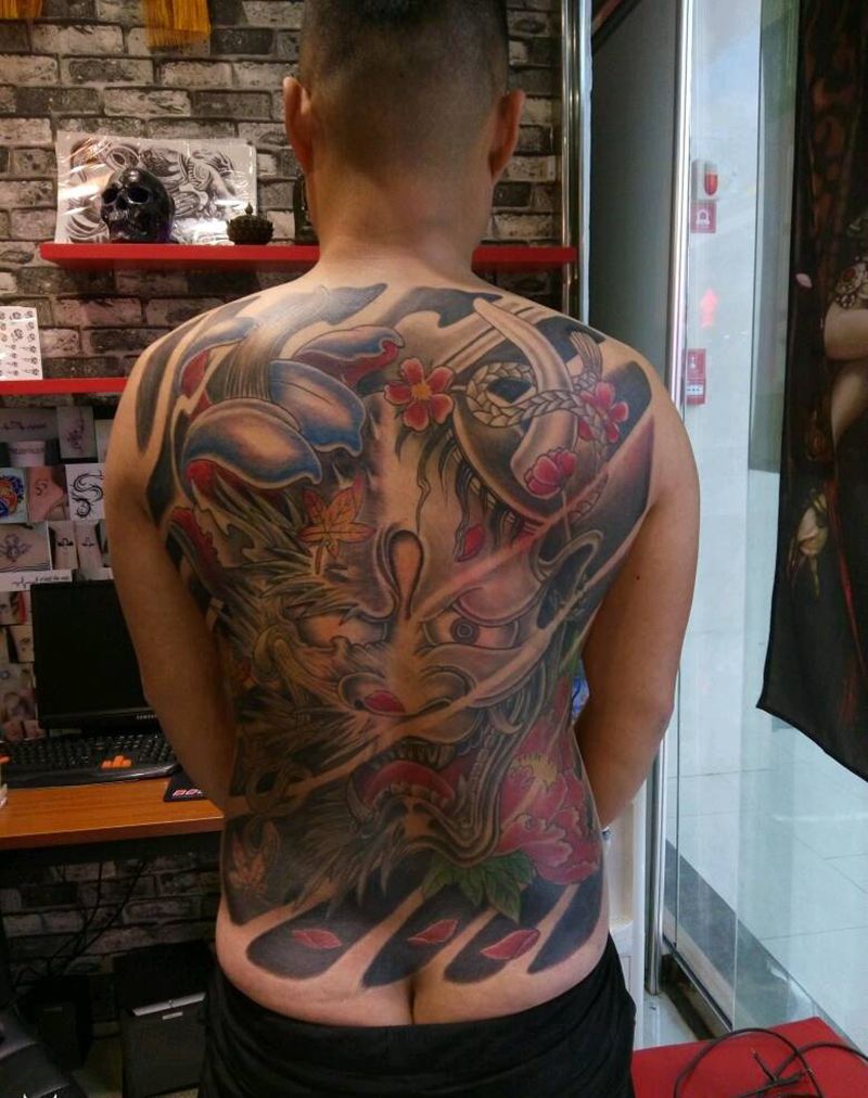 黑灰满背纹身图案