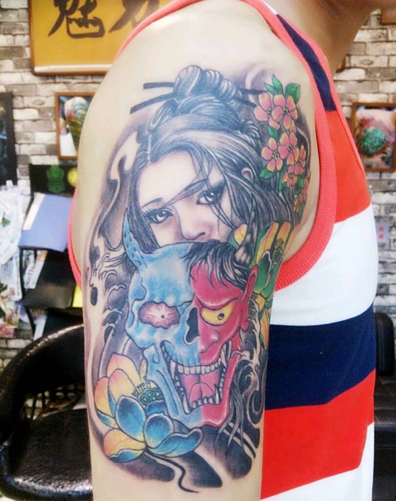 当前位置: 首页 >河北省廊坊市纹身店-魅力纹身社纹身图案>艺妓般若纹身图片