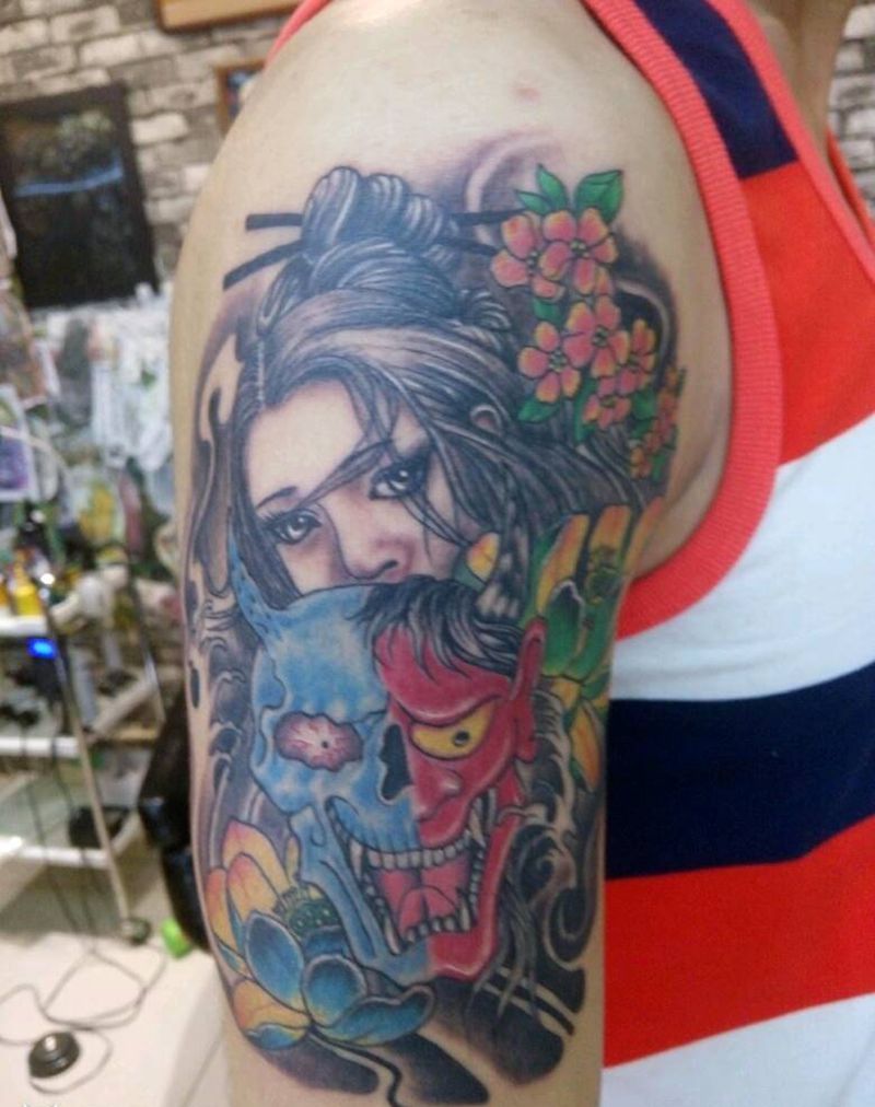 当前位置: 首页 >河北省廊坊市纹身店-魅力纹身社纹身图案>艺妓般若纹身图片