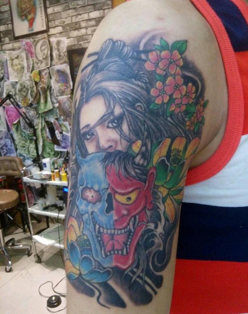 当前位置: 首页 >河北省廊坊市纹身店-魅力纹身社纹身图案>艺妓般若纹身图片