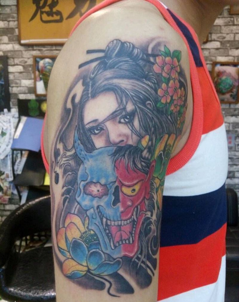 当前位置: 首页 >河北省廊坊市纹身店-魅力纹身社纹身图案>艺妓般若纹身图片