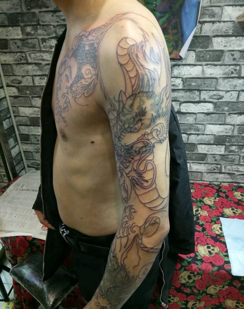 当前位置: 首页 >河北省廊坊市纹身店-魅力纹身社纹身图案>大花臂未完成纹身图片