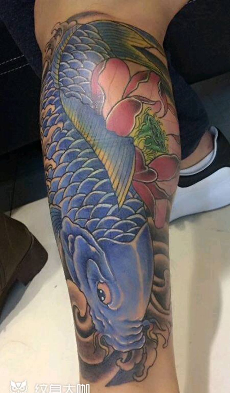 鲤鱼遮盖作品纹身图片_腿部传统动物廊坊纹身廊坊魅力廊坊万达万达纹身成品纹身图案