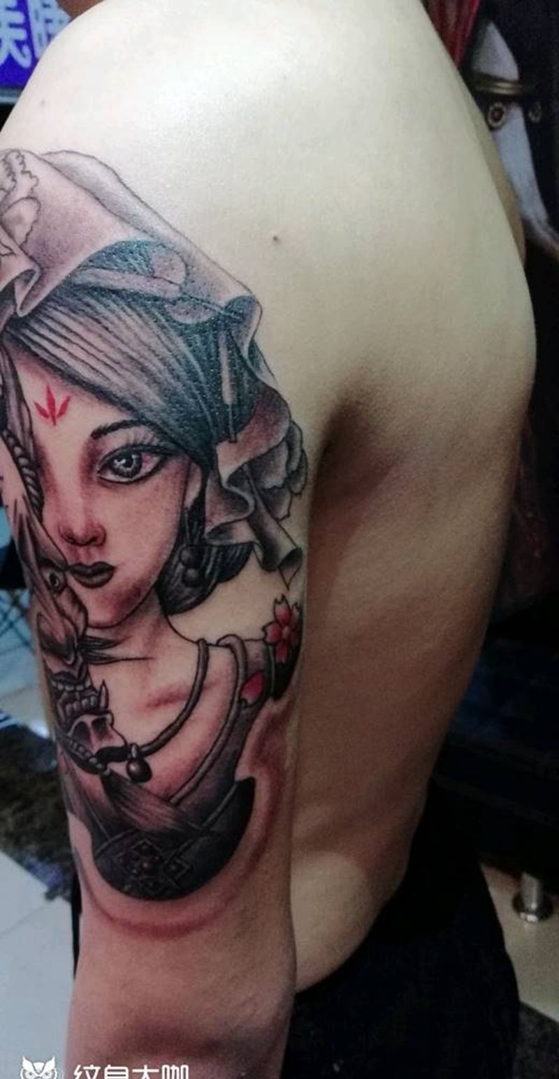 当前位置: 首页 >河北省廊坊市纹身店-魅力纹身社纹身图案>艺伎般若纹身图片