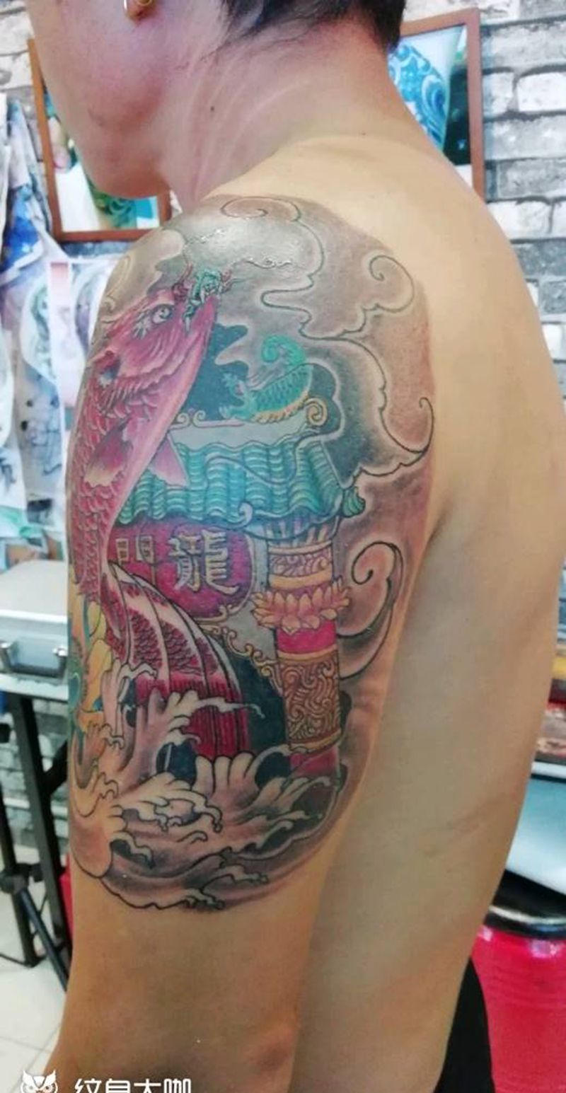 当前位置: 首页 >河北省廊坊市纹身店-魅力纹身社纹身图案>鲤鱼越龙门纹身图片