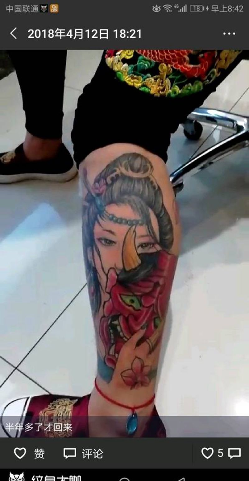 • T网红王老大花腿龙纹身图片_腿部新传统纹身图案