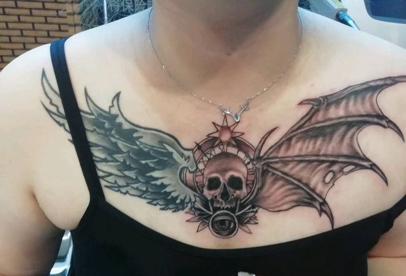 • 纹身吧推荐的披肩图腾半胛纹身图案作品展示
