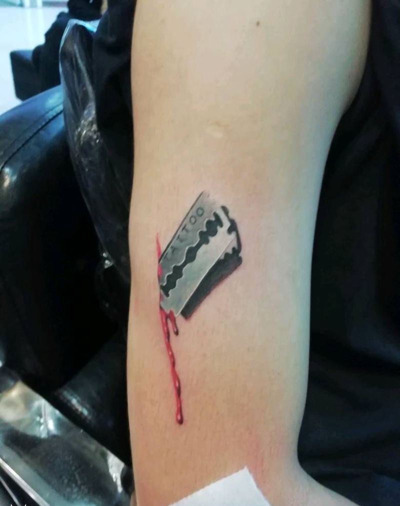 3D刀片纹身纹身图片_欧美写实纹身图案