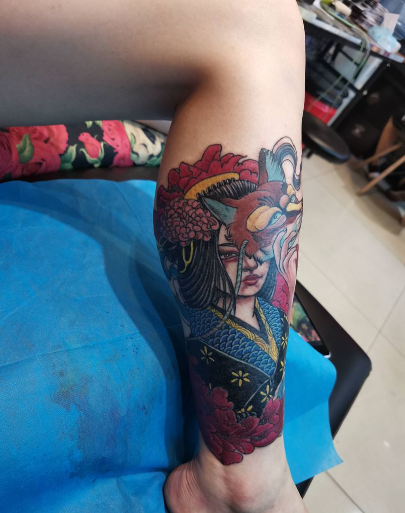 当前位置: 首页 >河北省廊坊市纹身店-魅力纹身社纹身图案>艺伎遮盖纹身图片_腿部手臂新传统纹身图案