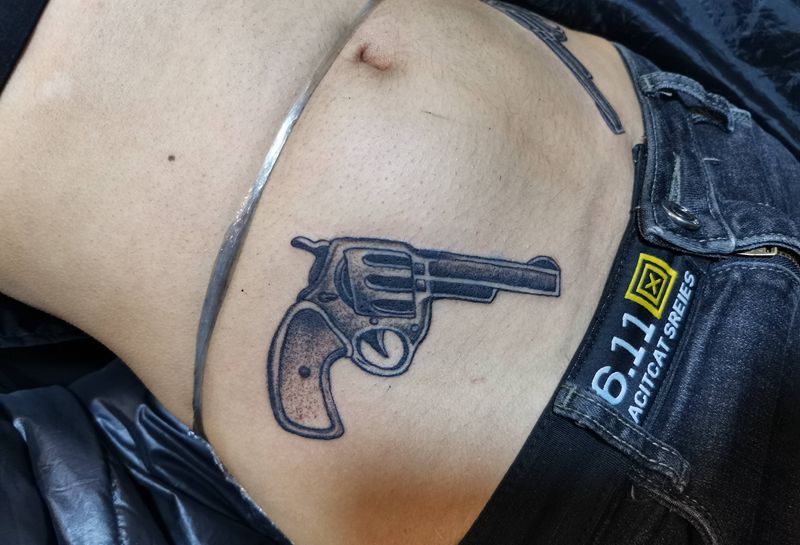 当前位置: 首页 >河北省廊坊市纹身店-魅力纹身社纹身图案>左轮手枪纹身图片_点刺纹身图案