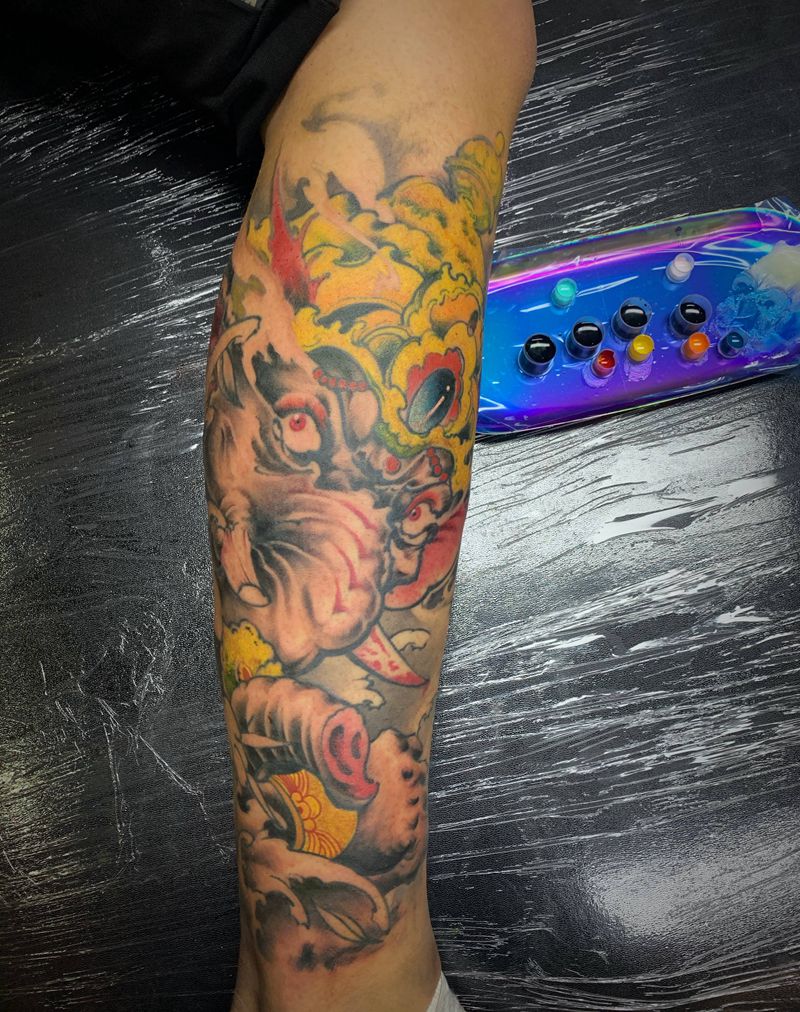 • T网红王老大花腿龙纹身图片_腿部新传统纹身图案