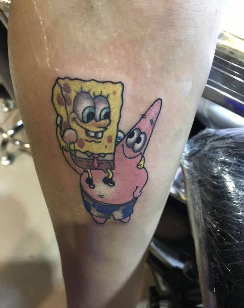 派大星海绵宝宝纹身图片_肩部欧美写实纹身图案