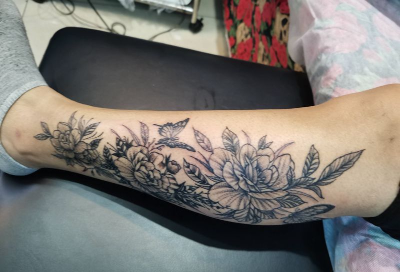 当前位置: 首页 >河北省廊坊市纹身店-魅力纹身社纹身图案>素花纹身图片_腿部点刺纹身图案