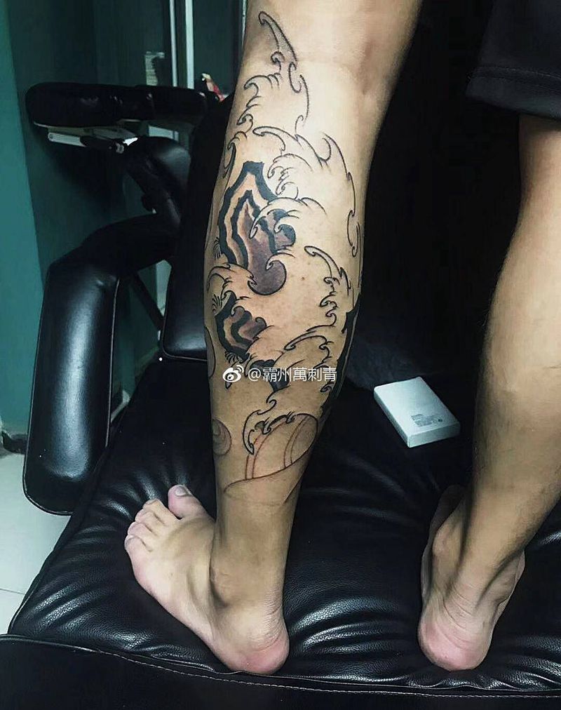• T网红王老大花腿龙纹身图片_腿部新传统纹身图案