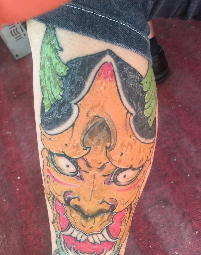 • T包小腿吹火男+阿多福纹身图片_腿部老传统新传统吹火男阿