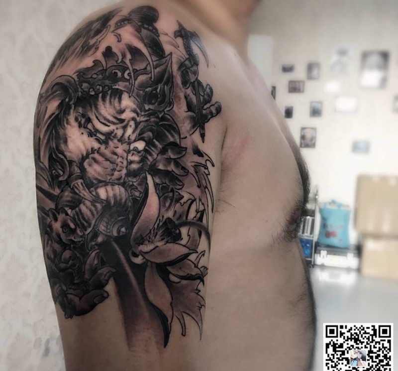 • H传统钟馗纹身 钟馗过肩纹身图案